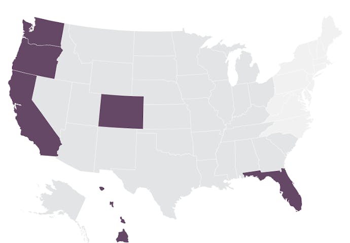 We are licensed in: CA, CO, FL, HI, OR, WA